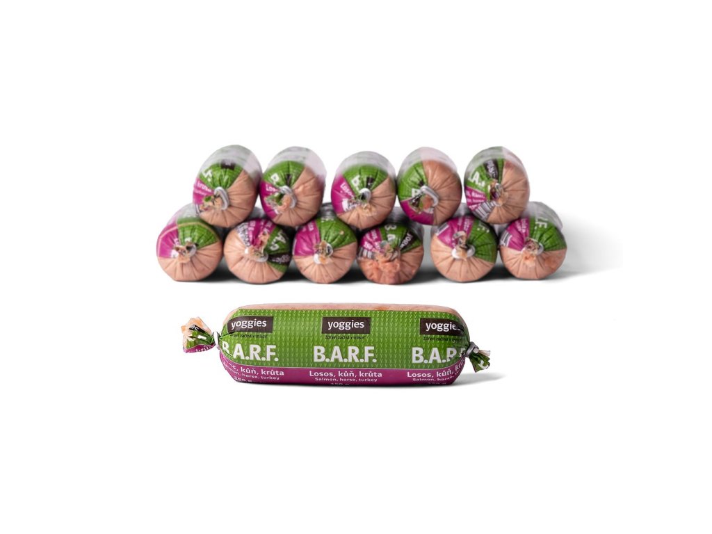 Menu obsahuje: syrové maso z lososa, koňská svalovina a krůtí skelet masitý, kloubní výživa, probiotika pro podporu zdraví a imunity. Vše je namleto jemněji, aby byla kombinace mas vhodná i pro malá plemena psů. Menu tvoří vyvážený mix, který je vhodný pro všechny věkové kategorie psů, včetně štěňat od 30. dne života.